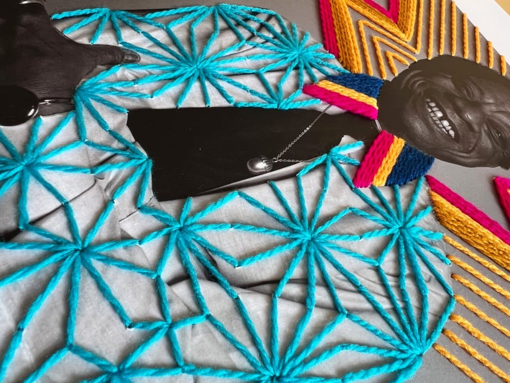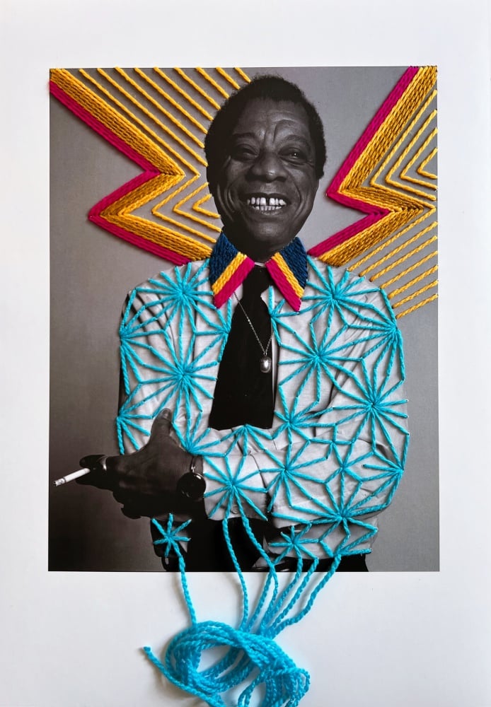 James Baldwin portrait n lamina paper 18.5 x 13 inches (47 x 33 cm) with textile handmade patterns.