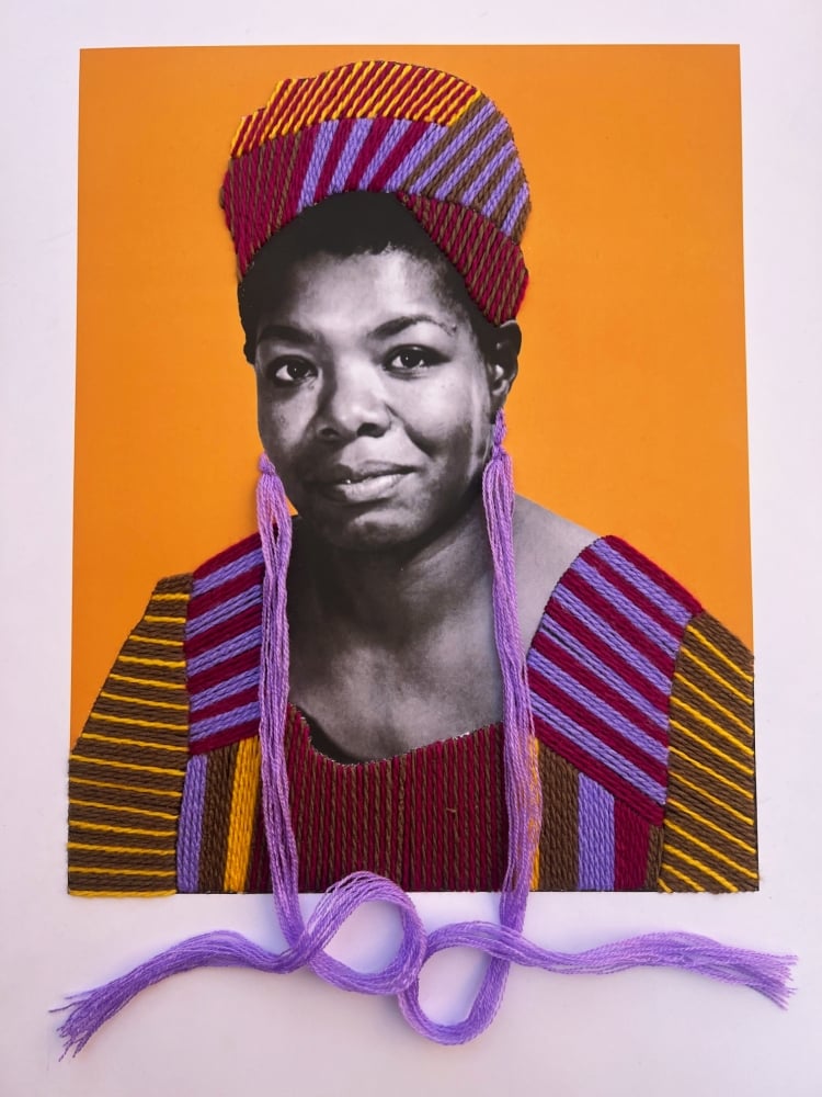 Maya Angelou portrait in lamina paper 18.5 x 13 inches (47 x 33 cm) with textile handmade patterns. Original work with certificate. signed. Prices are in USD . Worldwide shipping.