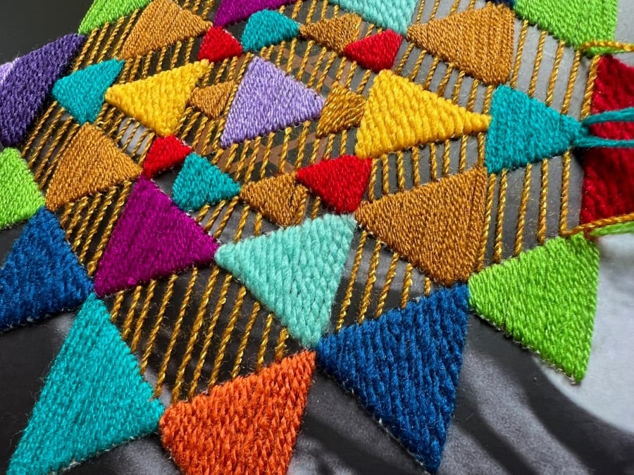 Native American portrait of Cheyenne chief Wolf Robe in lamina paper 18.5 x 13 inches (47 x 33 cm) with textile handmade patterns.